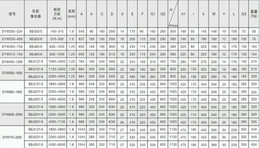 DYW係列(liè)的隔爆型電力液(yè)壓鼓式(shì)製動(dòng)器的安裝尺寸和製動力矩參數符(fú)合GB6333-1986標準;
